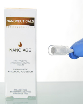 Dit biodynamische serum met nanotechnologie bevat 2% Hyaluronzuur en stimuleert de bloedstromen in de huid waardoor celvernieuwing versneld geactiveerd wordt en de aanmaak van nieuw collageen en elastine wordt bevorderd. Het Nano-Age serum geeft direct na het opbrengen al een zacht en verstrakkend gevoel aan de huid. Tijdens de behandeling voelt u een vibrerende prikkeling op de huid.